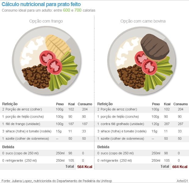 via G1Cálculo Nutricional do ‘prato feito’ Frango vs. Carne bovina